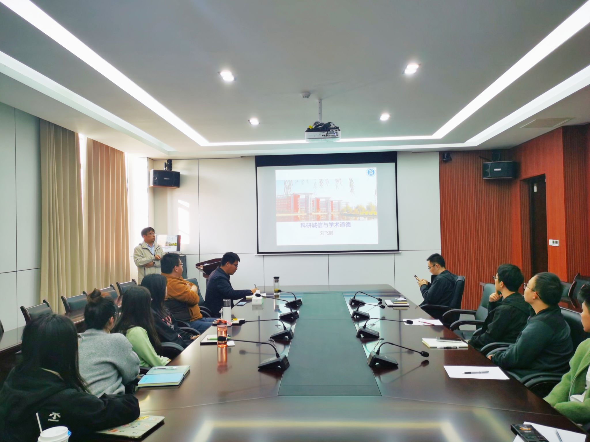 骨干教师代表刘飞鹏利用丰富案例就如何做好科研和科研诚信两个方面做了生动的报告,鲜活的案例引发学生的触动。为提高了同学们的学术规范,科学道德和学术诚信意识打下坚实基础。