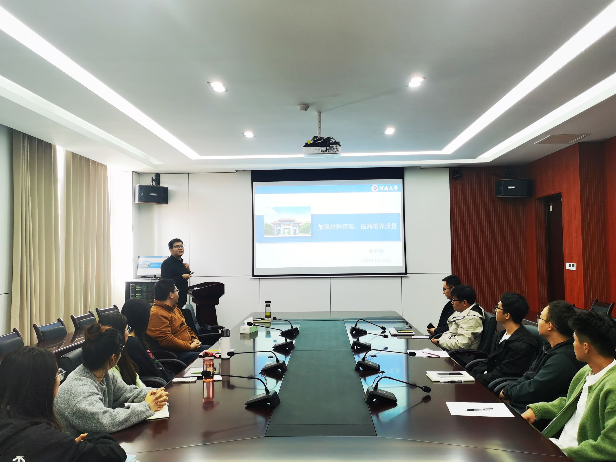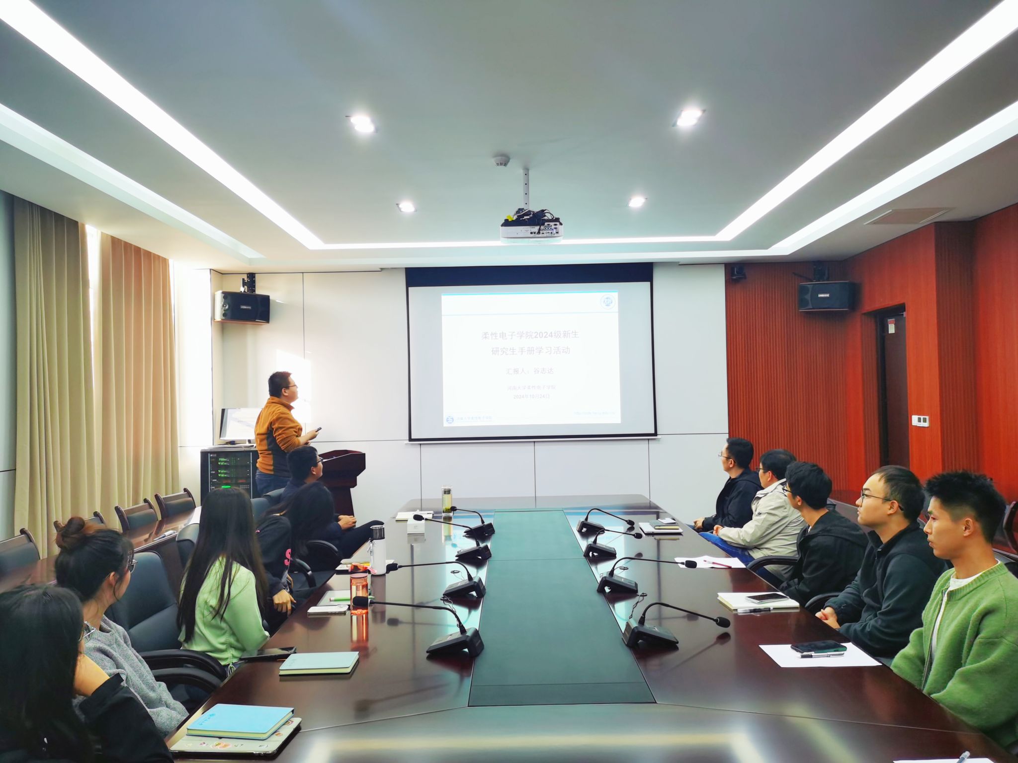 为落实立德树人的任务,引导研究生坚定崇高理想信念,树立学术科研信心,深入了解校史校情,尽快适应科研环境、校园文化生活,扎实做好学业生涯规划,1024日下午,麻豆网 组织学院领导班子成员和青年骨干教师组织2024级研究生新生开展入学教育培训活动。