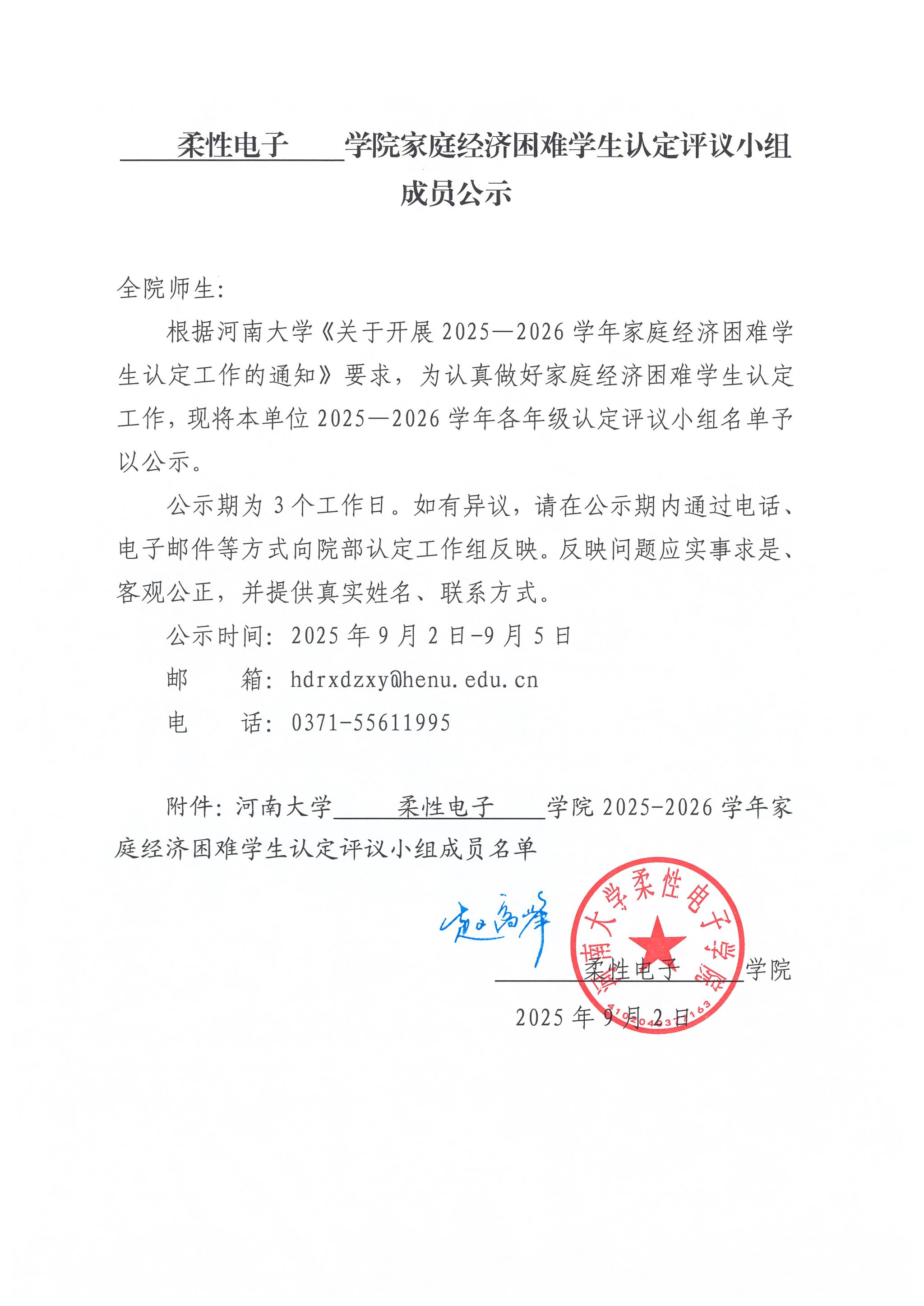 麻豆网 2025-2026学年家庭经济困难学生认定评议小组成员公示