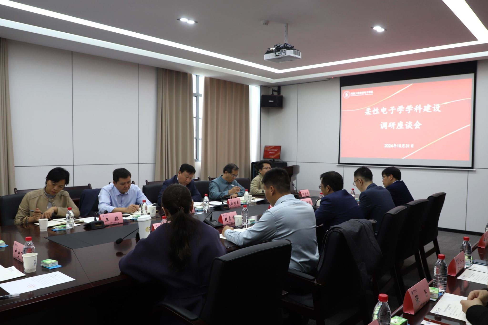 将聚焦有机电子学、印刷电子学、生物电子学等重点方向,与河南省柔性电子产业技术研究院深度共建,打造引领未来科技发展和培养复合型、创新型人才的教学科研高地,他从学科基础与现状、建设思路与规划、亟待解决的问题等三方面深入介绍了柔性电子学建设情况。与会人员就柔性电子学学科的未来建设路径进行了深入的交流和探讨。