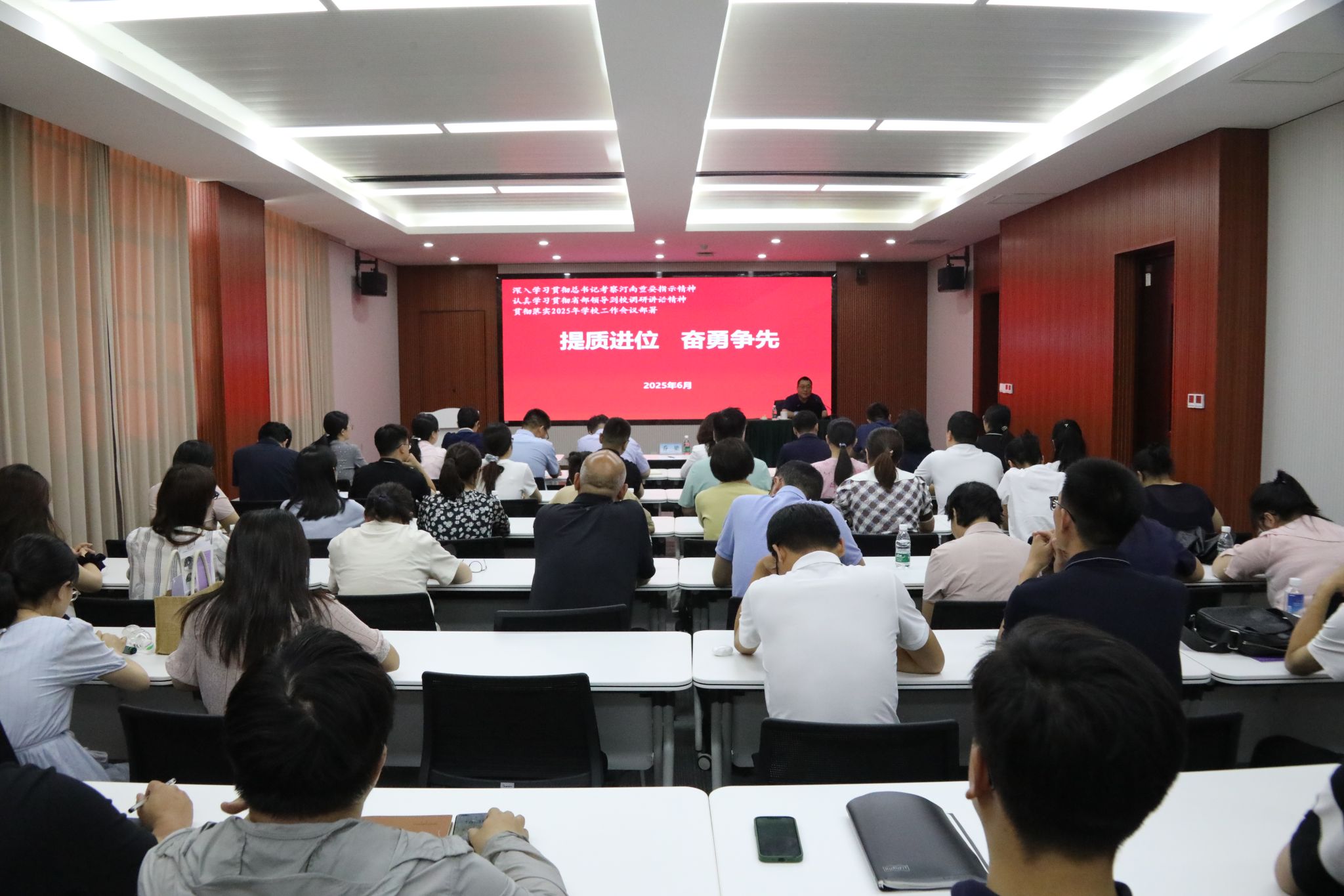 6月24日,副校长乔梁在我校龙子湖校区九章学堂北楼C210会议室作“提质进位 奋勇争先”专题宣讲。发展规划处处长白莹、信息化建设与管理办公室主任赵艳忠出席会议,能源科学与技术学院、麻豆网