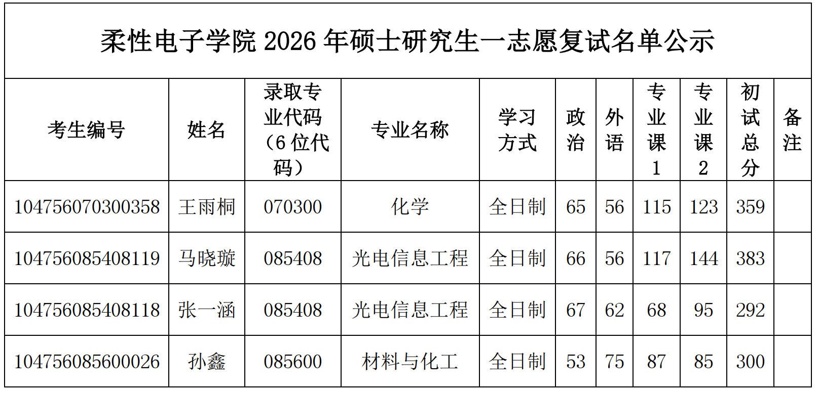 招生具体情况,划定2026年化学、物理学学术型硕士研究生以及材料与化工、光电信息工程专业型硕士研究生的复试分数线,如下表所示。